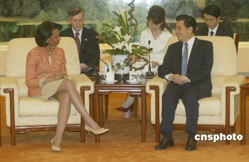 賴斯表示,上任國(guó)務(wù)卿以來不到半年時(shí)間內(nèi)兩次訪問中國(guó),這足以說明美中關(guān)系的重要性和發(fā)展水平。她說,布什總統(tǒng)期待胡錦濤主席訪美,與他就發(fā)展美中關(guān)系和共同關(guān)心的重大問題交換意見。