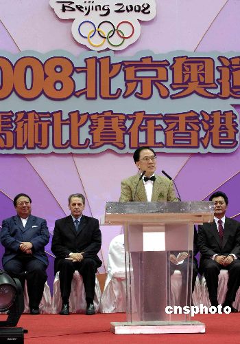 曾蔭權(quán)今日在沙田馬場出席電視特備節(jié)目“2008北京奧運馬術(shù)比賽在香港”慶;顒訒r指出,我們一起慶祝的,不單是香港體育的歷史時刻,而且是整個香港的歷史時刻;叵攵懔阋荒,我們曾經(jīng)同全國上下一起為北京成功申辦奧運而歡呼慶祝。四年后的今晚,我們又重溫到成功申辦的喜悅,而且成為北京奧運的一部分。