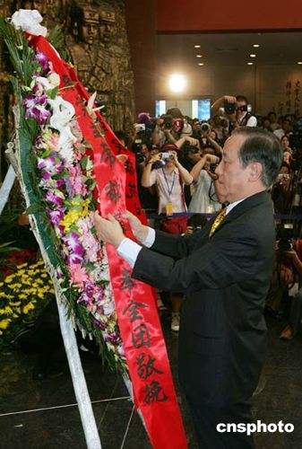 郁慕明參觀抗戰(zhàn)紀(jì)念館敬獻(xiàn)花圈