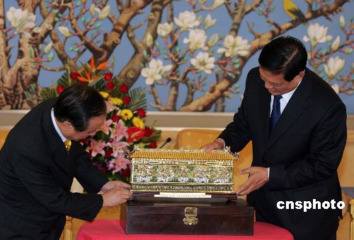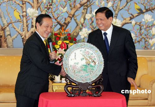 中共北京市委書記劉淇七月十一日在北京飯店會見臺灣新黨主席郁慕明率領的新黨“民族之旅”訪問團。作者:毛建軍