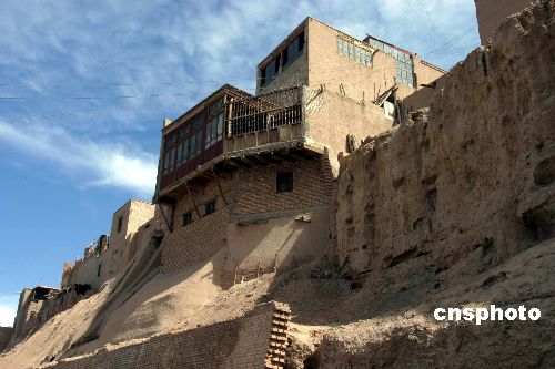 地處新疆南疆的喀什,是中國著名歷史文化名城。在喀什噶爾老城東南端地勢最高的黃土高崖上,有一處高臺維吾爾民居,已有五六百年歷史。該民居長達(dá)數(shù)百米,現(xiàn)有居民603戶,人口2450多人,全都為維吾爾族。相傳它早在兩千多年前就己存在。圖為二○○五年盛夏七月,高臺民居一角。 作者:田地