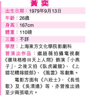 趙薇與黃奕在演藝路上,可謂甚有淵源,兩人先后飾演瓊瑤筆下《還珠格格》的“小燕子”角色,近期則一同演繹三十年代女性,黃奕演出電視版《長恨歌》、趙薇則演出電視劇《京華煙云》;及至下月,兩人更會“撞到正”齊齊推出個人大碟,雖然要到推出時才知鹿死誰手,但在情場上兩人已率先較量,看來能在公眾場合拖手的“新歡”黃奕勝算較大!