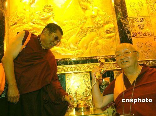 在香港參加中國(guó)西藏文化周的西藏活佛一行18日來到金至尊金洗手間。