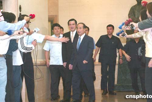 王馬座車上午幾乎同時(shí)抵達(dá)國民黨,兩人下車握手后,同時(shí)進(jìn)入黨中央。對于媒體的詢問,兩人微笑以對,沒有任何發(fā)言。