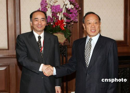 中國(guó)外交部長(zhǎng)李肇星七月二十五日在北京釣魚臺(tái)國(guó)賓館會(huì)見并宴請(qǐng)前來(lái)出席朝核問(wèn)題六方會(huì)談的日本外務(wù)省亞大局長(zhǎng)佐佐江賢一郎。作者:毛建軍