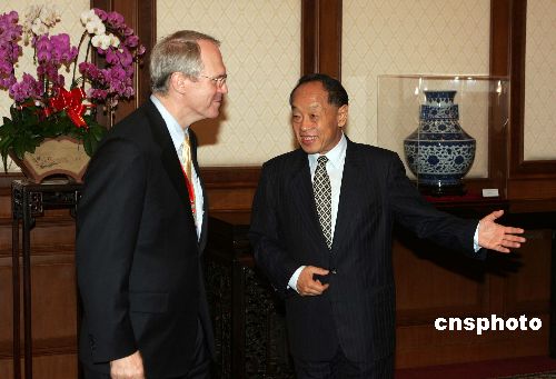 中國(guó)外交部長(zhǎng)李肇星七月二十五日在北京釣魚臺(tái)國(guó)賓館會(huì)見并宴請(qǐng)前來(lái)出席朝核問(wèn)題六方會(huì)談的美國(guó)國(guó)務(wù)院助理國(guó)務(wù)卿希爾。作者:毛建軍