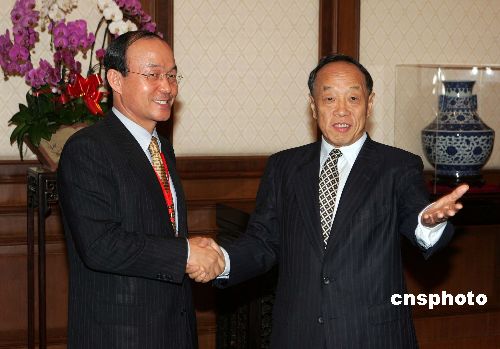 中國(guó)外交部長(zhǎng)李肇星會(huì)見并宴請(qǐng)前來(lái)出席朝核問(wèn)題六方會(huì)談的韓國(guó)外交通商部次官補(bǔ)宋旻淳。作者:毛建軍
