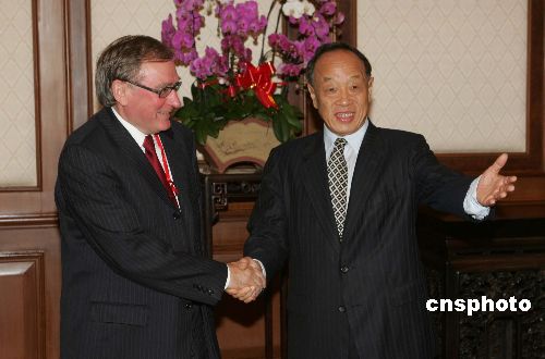 中國外交部長李肇星七月二十五日在北京釣魚臺國賓館會見并宴請前來出席朝核問題六方會談的俄羅斯副外長阿列克謝耶夫。作者:毛建軍