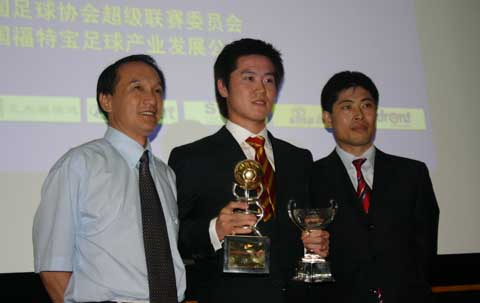 沈陽(yáng)金德隊(duì)的陳濤獲得最佳新秀獎(jiǎng),他上個(gè)賽季的表現(xiàn)讓人眼前一亮,被認(rèn)為是中國(guó)足球新一代球員中的佼佼者。在全部的24張選票中,他獲得了13票。最佳教練員獎(jiǎng)由目前的國(guó)家隊(duì)主教練朱廣滬獲得,他去年帶領(lǐng)資金匱乏的深圳隊(duì)逆境中奪冠,讓人信服,在24張選票中他得到19張,高票當(dāng)選。最佳裁判員則是孫葆潔,他是陸俊之后,當(dāng)前中國(guó)水平最高的裁判。