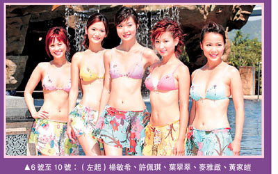 這次已是港姐穿著第五套泳衣示人,大會方面也承認(rèn)比以往的多,節(jié)目監(jiān)制何小慧表示,港姐的口號是“美麗由心出發(fā)”,希望能夠表現(xiàn)她們的愛心,更突出美麗的一面。加上今年夏天特別炎熱,故此會越穿越少!