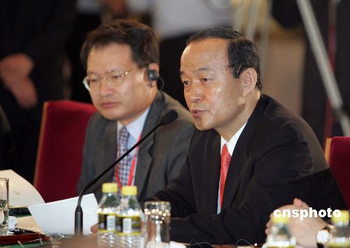 韓國(guó)代表團(tuán)團(tuán)長(zhǎng)、韓國(guó)外交通商部次官補(bǔ)宋旻淳七月二十六日在北京釣魚臺(tái)國(guó)賓館芳菲苑舉行的朝核問題六方會(huì)談上發(fā)表致辭。作者:毛建軍