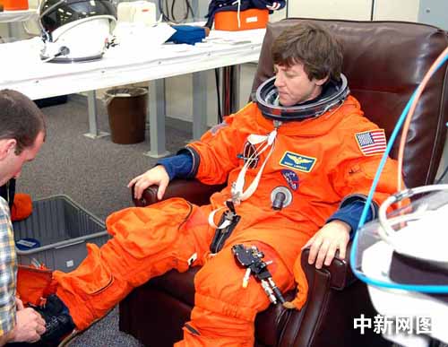中新網(wǎng)洛杉磯七月二十六日電(記者賈國(guó)榮)據(jù)美國(guó)宇航局的實(shí)況轉(zhuǎn)播畫面,航天飛機(jī)“發(fā)現(xiàn)號(hào)”機(jī)組二十六日早上六時(shí)二十分在肯尼迪航天中心開始穿太空服。