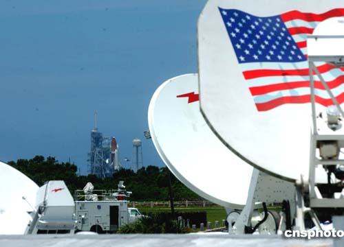 美國眾多媒體已在肯尼迪航天中心架好天線,連續(xù)報道航天飛機(jī)“發(fā)現(xiàn)號”最后的倒計時發(fā)射進(jìn)程。作者:賈國榮