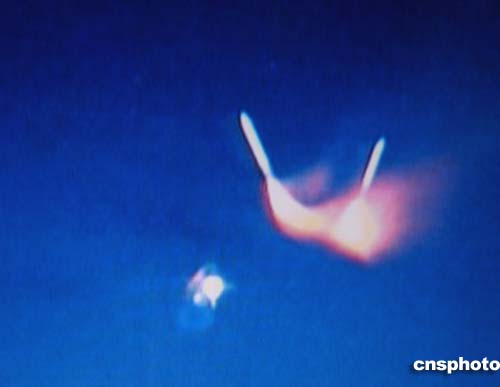 “發(fā)現(xiàn)號”二十六日在肯尼迪航天中心發(fā)射起飛后兩分鐘后,助推火箭成功分離。作者:賈國榮