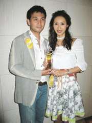 中新網7月27日電 據香港媒體報道,郭可盈與林文龍昨日出席“新婚生活易大賞2005”,兩人獲得新人至愛婚紗攝影代言人大賞。對于周刊指郭可盈拋下老公林文龍,夜會仁愛總經理王政浩,兩人被問到此事時,表現冷靜,并無動氣,林文龍說﹕“是個笑話,這個記者生活圈子太狹窄,見到可盈身旁的不是我就大驚小怪!笨捎f﹕“只是一齊出席派對,沒什么!