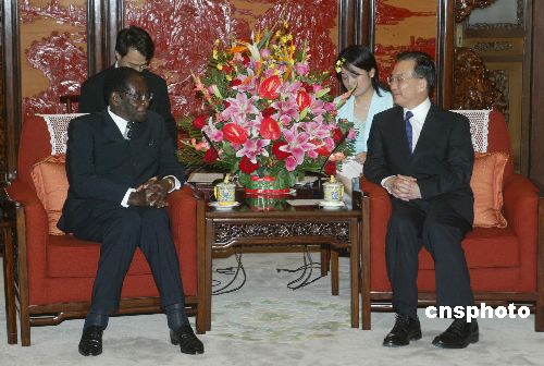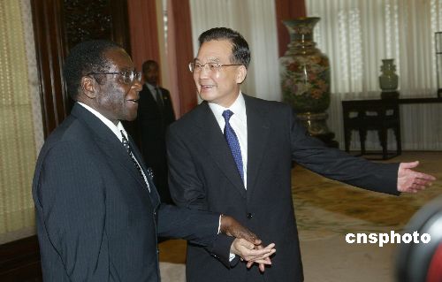圖:溫家寶會見津巴布韋總統(tǒng)穆加貝