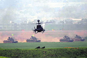 中新網(wǎng)7月28日電 臺(tái)軍“漢光21號(hào)”演習(xí)27日在臺(tái)中空軍清泉崗基地舉行,除陳水扁、呂秀蓮和謝長(zhǎng)廷都到場(chǎng)外,美國國防情報(bào)局官員及日本退役人員也出現(xiàn)在觀禮臺(tái)上。