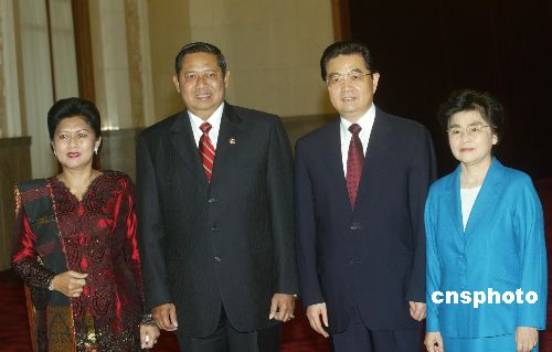 圖:胡錦濤與印尼總統(tǒng)蘇希洛夫婦合影