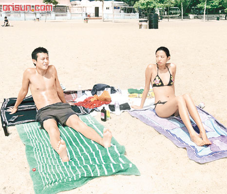 Edison最愛于中午時(shí)分、太陽最猛烈時(shí)暴曬,昨日他與一位擁有標(biāo)準(zhǔn)模特兒身形的女伴,于一時(shí)左右抵達(dá)淺水灣,女伴穿上繡花三點(diǎn)式泳裝,相比之下Edison則顯得較為保守,他只赤裸上身,穿上運(yùn)動(dòng)型短褲。接著二人各自拿出大毛巾墊于沙灘上,Edison再細(xì)心將兩條毛巾并排在一起,然后齊齊享受日光浴。