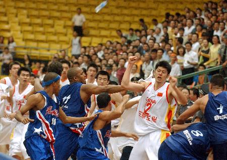 29日晚中國與波多黎各隊(duì)的比賽進(jìn)行到離比賽結(jié)束還有1分29秒時(shí),波多黎各隊(duì)4號(hào)球員曼紐爾對(duì)易建聯(lián)惡意犯規(guī),結(jié)果導(dǎo)致雙方球員在賽場內(nèi)群毆。國際籃聯(lián)最終決定給予雙方全部球員開除出場的處罰,但比賽結(jié)果還保留,中國隊(duì)91:80獲勝。