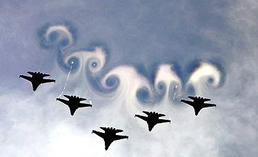 中新網(wǎng)8月1日電 據(jù)法新社報(bào)道,7月30日,俄軍在距離莫斯科40公里的一個城鎮(zhèn)舉行了航空表演。圖為俄空軍米格29戰(zhàn)機(jī)在空中表演,這次活動是為了紀(jì)念第二次世界大戰(zhàn)而舉行的。(春風(fēng))
