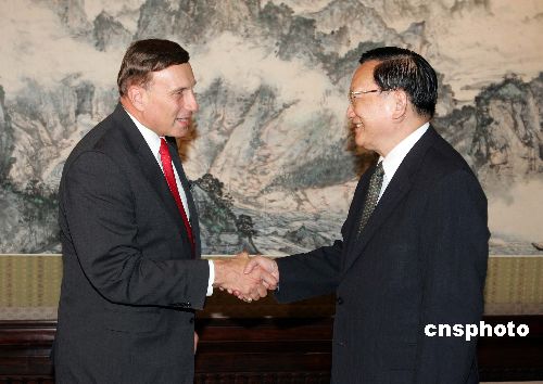 圖:唐家璇會(huì)見美國眾議院美中議會(huì)交流小組代表團(tuán)