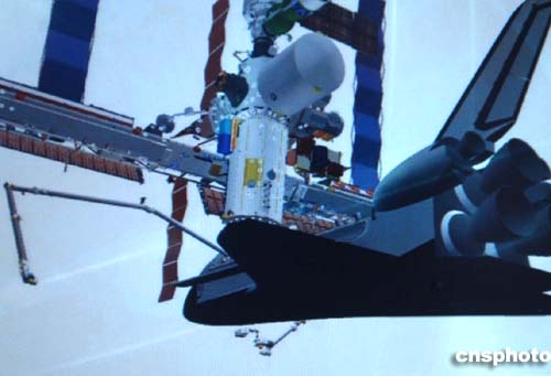 發(fā)現(xiàn)號(hào)宇航員斯蒂芬·羅賓遜在第三次太空行走中出任“外科醫(yī)生”位置圖