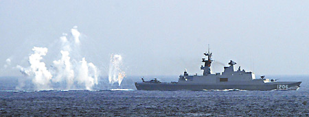 據(jù)報(bào)道,昨天的海空聯(lián)合操演假想解放軍以突擊、封鎖及海空攻擊方式,意圖封鎖臺(tái)左營與高雄港,阻斷臺(tái)對外交通。臺(tái)海軍艦只緊急出港,港內(nèi)部隊(duì)實(shí)施要地防空。此時(shí),模擬解放軍戰(zhàn)機(jī)臨空,臺(tái)軍各艦及港內(nèi)防空飛彈、火炮,皆啟動(dòng)接戰(zhàn)。
