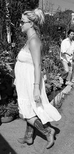 愛扮靚的布蘭妮品味實(shí)在令人不敢恭維,身上穿著白色清涼抹胸孕婦裝,腳上卻不合時宜地搭配了一雙棕色馬靴。正值中午天氣十分炎熱,小甜甜撩起裙角扇涼,大腿裸露全然不顧形象。(肖琳)
