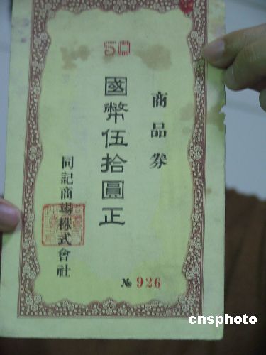 湖南省收藏協(xié)會(huì)理事闞志雄先生8月8日向記者展示了其收藏多年的“同記商場(chǎng)株式會(huì)社”商品券。該商品券反面左下角貼有一張橘紅色、面值五分的印花,上面寫著“滿洲帝國(guó)收入印紙”。這成為當(dāng)年日本扶持偽政府、對(duì)華經(jīng)濟(jì)侵略的又一鐵證。作者:劉雙雙