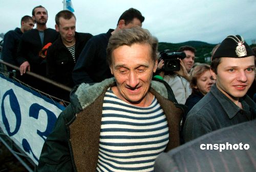 | 根據(jù)俄軍方8月5日提供的消息,“AS-28”型潛艇4日中午在別廖佐瓦亞灣進(jìn)行海底訓(xùn)練時,因推進(jìn)器被漁網(wǎng)困住而被困在俄東北部堪察加灣海域190米深的海底。為避免“庫爾斯克號”核潛艇悲劇重演,俄羅斯軍方于當(dāng)?shù)貢r間8月6日清晨開始對受困海底的潛艇展開大營救。美國、日本、英國也紛紛派出救援力量。在多方的共同努力下,目前艇上的7名艇員已經(jīng)全部獲救。圖為獲救的7名艇員。作者:Ic/cnsphoto