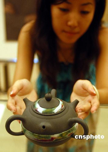 “古藝新生·美人醉再現(xiàn)”----臺灣知名陶藝家陳佐導(dǎo)先生精品陶瓷藝術(shù)展將于八月九日至十七日在北京中國美術(shù)館舉辦。此次展出的百件陶瓷精品均為陳先生終其一生研究的成果。圖為展出的一款造型獨特、寓意“兩岸三通”的茶壺。作者:張宇