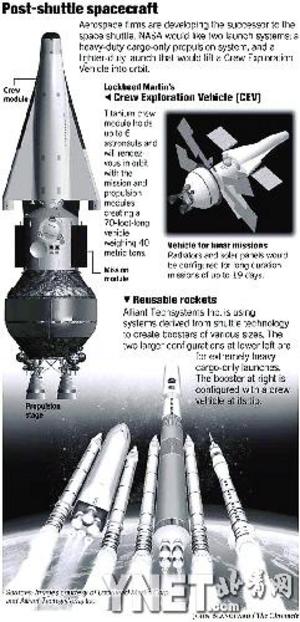 據(jù)報(bào)道,上個(gè)月,NASA已經(jīng)將2800萬(wàn)美元的合同獎(jiǎng)勵(lì)給了美國(guó)洛克希德-馬丁公司和那斯羅蒲·格魯曼-波音研究小組,讓他們?cè)O(shè)計(jì)一種取代航天飛機(jī)的新型飛船———“宇航員探險(xiǎn)車”。明年3月,NASA將從兩種設(shè)計(jì)方案中選擇最好的一種投入開(kāi)發(fā)建造。據(jù)悉,“宇航員探險(xiǎn)車”將和阿波羅飛船的指揮艙異常相似,但卻比后者更加龐大,約有12噸重。此外,“宇航員探險(xiǎn)車”可以重復(fù)使用,如果僅僅來(lái)回太空站,可以重復(fù)使用10次以上。