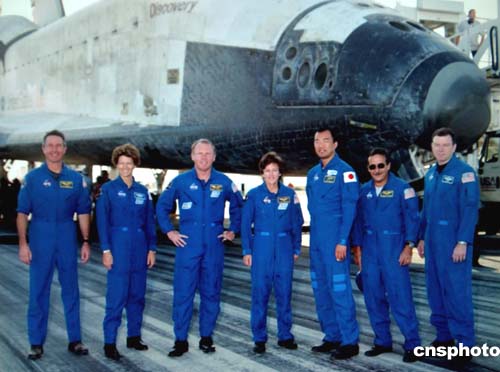 發(fā)現(xiàn)號航天飛機自七月二十六日升空之后,繞地球飛行二百一十九圈,行程五百八十萬英里。
