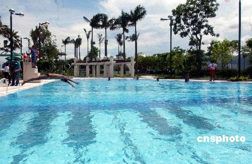 香港迪斯尼9日開(kāi)放兩間酒店讓傳媒參觀。圖為迪斯尼好萊塢酒店的游泳池。作者:譚達(dá)明