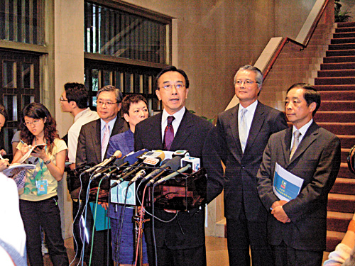 獲安排第一個會見的自由黨向曾蔭權(quán)提及有關(guān)政改、經(jīng)濟發(fā)展、空氣質(zhì)素等問題,建議增加選委會人數(shù)至一千二百人,選委會選民也應(yīng)由目前的十六萬增至三十二萬。并分別增加五個功能組別及直選席位,分配予專業(yè)界、商界及地區(qū)人士。以及重新考慮參照新加坡做法,興建賭場。