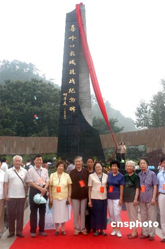 | 8月12日,“長(zhǎng)城抗戰(zhàn)紀(jì)念碑”揭幕儀式在河北遷西縣喜峰口老婆山下舉行,以紀(jì)念1933年春長(zhǎng)城抗戰(zhàn)和國(guó)民革命軍二十九軍將士無(wú)畏犧牲的民族愛(ài)國(guó)精神。圖為長(zhǎng)城抗戰(zhàn)將領(lǐng)蔣光鼐之子蔣建國(guó)(左一)、趙登禹之女趙學(xué)芬(左三〉、佟麟閣之子佟兵(左四〉、李濟(jì)深之女李筱桐(左五〉丶何基灃之女何玟〈左六〉、于學(xué)忠之女于允賢〈左七〉、馮冶安之女馮炳如〈左八),以貴賓身份參加儀式。作者:鄒憲