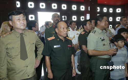 在這個中國人民抗日戰(zhàn)爭暨世界反法西斯戰(zhàn)爭勝利六十周年的日子里,坐落在盧溝橋畔宛平城內的中國人民抗日戰(zhàn)爭紀念館莊嚴肅穆,參觀的人流穿梭不息。受中國國防部外事辦公室的邀請參觀展覽的外國駐華武官團一行在熙熙攘攘的人群中尤為顯眼,他們仔細觀看一幅幅照片、一件件文物和一處處復原景觀,認真聽取講解人員的英語介紹。