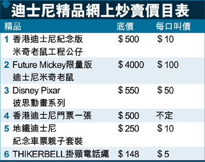 近日除了在網(wǎng)上出現(xiàn)大量炒賣(mài)香港迪斯尼彩排門(mén)票外,每天也有買(mǎi)家在網(wǎng)上誠(chéng)征迪斯尼的開(kāi)幕及彩排日門(mén)票,求過(guò)于供。其中,雅虎拍賣(mài)網(wǎng)站及ebay拍賣(mài)網(wǎng)站近日出現(xiàn)了多位賣(mài)家轉(zhuǎn)售9月3日的彩排門(mén)票,用上“搶先體驗(yàn)”為題作招徠。賣(mài)家會(huì)以“一手交錢(qián),一手交貨”的模式進(jìn)行交易,當(dāng)收到匯款或支票后,便會(huì)以郵寄的方式把門(mén)票送到買(mǎi)家手中。