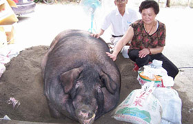 據(jù)臺灣媒體報道,動物保護團體18日到“農(nóng)委會”抗議神豬增肥比賽以宗教祭祀、民間祭祀為由,讓豬被迫增肥,甚至強迫灌食,還限制行動,最后肥到癱瘓、渾身是;動保團體抨擊,這樣的飼養(yǎng)方式根本就是虐待動物,應該依法取締。