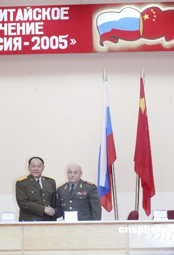 八月十八日,中國人民解放軍總參謀長(zhǎng)梁光烈上將(左)和俄羅斯聯(lián)邦武裝力量總參謀長(zhǎng)巴魯耶夫斯基大將,在位于符拉迪沃斯托克的俄羅斯太平洋艦隊(duì)共同宣布,“和平使命—2005”中俄聯(lián)合軍事演習(xí)正式開始。此次聯(lián)合軍事演習(xí),圍繞共同打擊國際恐怖主義、極端主義和分裂主義,應(yīng)對(duì)各種危機(jī),主要演練戰(zhàn)略磋商與戰(zhàn)役籌劃、兵力投送與展開、實(shí)施交戰(zhàn)三個(gè)訓(xùn)練問題。演習(xí)跨越兩國陸、海、空域,參演軍兵種齊全,演練科目較多。作者:王麗南