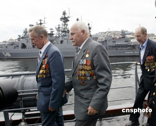 圖:中俄老戰(zhàn)士代表參觀太平洋艦隊基地艦艇