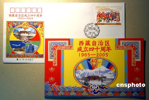 圖:“西藏自治區(qū)成立四十周年”紀(jì)念郵品發(fā)行