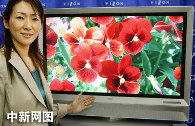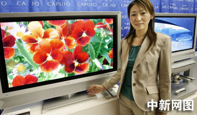 2005年8月23日,日本家用電器巨頭——三洋公司的一位職員展示著該公司最新款42英寸高清等離子電視——“PDP-42HD”。三洋公司將從10月21日起在日本國(guó)內(nèi)市場(chǎng)推出“Capujo”牌電視,每臺(tái)電視的價(jià)格預(yù)計(jì)是56萬5千日元(5140美元)