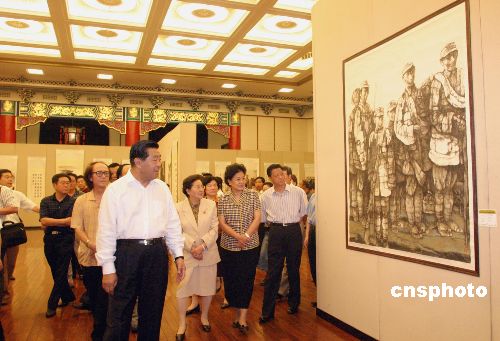 “紀(jì)念中國(guó)人民抗日戰(zhàn)爭(zhēng)勝利六十周年美術(shù)作品展”八月二十三日在北京全國(guó)政協(xié)禮堂開(kāi)幕。全國(guó)政協(xié)主席賈慶林、全國(guó)人大常委會(huì)副委員長(zhǎng)、民革中央主席何魯麗等出席開(kāi)幕式并參觀了展覽。展覽的主題是“以史為鑒,面向未來(lái);毋忘國(guó)恥,振興中華”,展出作品百余幅。作者:張勤