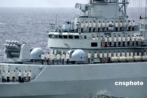 圖:中俄聯(lián)合軍事演習的海軍艦艇接受檢閱
