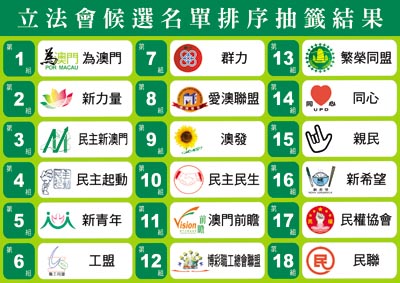 澳門(mén)立法會(huì)選舉:十八個(gè)直選組別完成選票排序