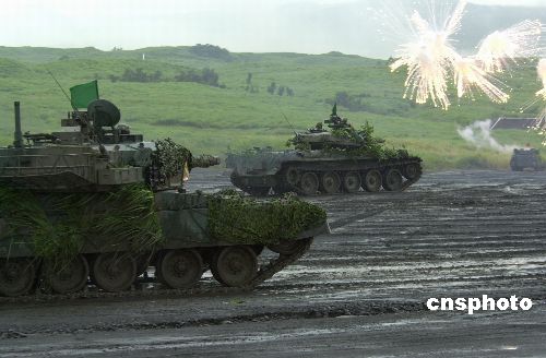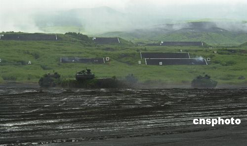 日本陸上自衛(wèi)隊(duì)二十五日在位于富士山麓的靜岡東富士演習(xí)場舉行二00五年度綜合火力演習(xí)。共出動人員約二千名,戰(zhàn)車約六十輛,各類火炮約四十門,飛機(jī)約二十架,其他車輛約四百輛。作者:王健