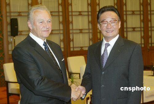 八月二十六日,全國(guó)人大常委會(huì)委員長(zhǎng)吳邦國(guó)在北京人民大會(huì)堂會(huì)見(jiàn)來(lái)訪(fǎng)的愛(ài)沙尼亞總統(tǒng)呂特爾。作者:史利
