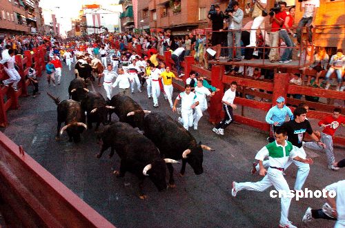 8月26日,第二屆馬德里圣·塞巴斯帝安奔牛節(jié)開(kāi)幕。大約有2200名愛(ài)好者參加了這一活動(dòng).他們?cè)趦疵偷墓V八纳⒈继,以此尋求刺激。?人在活動(dòng)中受了輕傷4人被送往當(dāng)?shù)氐尼t(yī)院。據(jù)悉,該活動(dòng)將持續(xù)到8月31日。作者:Ic/cnsphoto